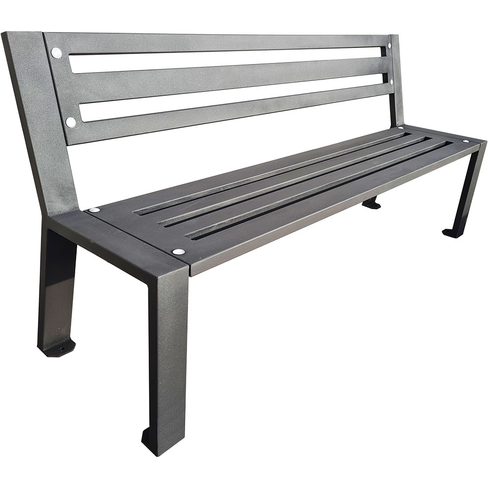 Banca in stil Bruxelles formata din 2 laturi de sustinere din fier zincat la cald de sectiune dreptunghiulara, cu plinte destinate sprijinirii pe sol si/sau ancorarii prin dibluri, lungime 1750 mm, latime 530 mm si inaltime 820 mm. Alcatuit din 2 panouri, compuse din sipci tubulare din fier zincat la cald, 1 de 1590x385x30 mm pentru sezut si 1 de 1590x250x30 mm pentru spatar fixat pe laterale prin suruburi din otel.