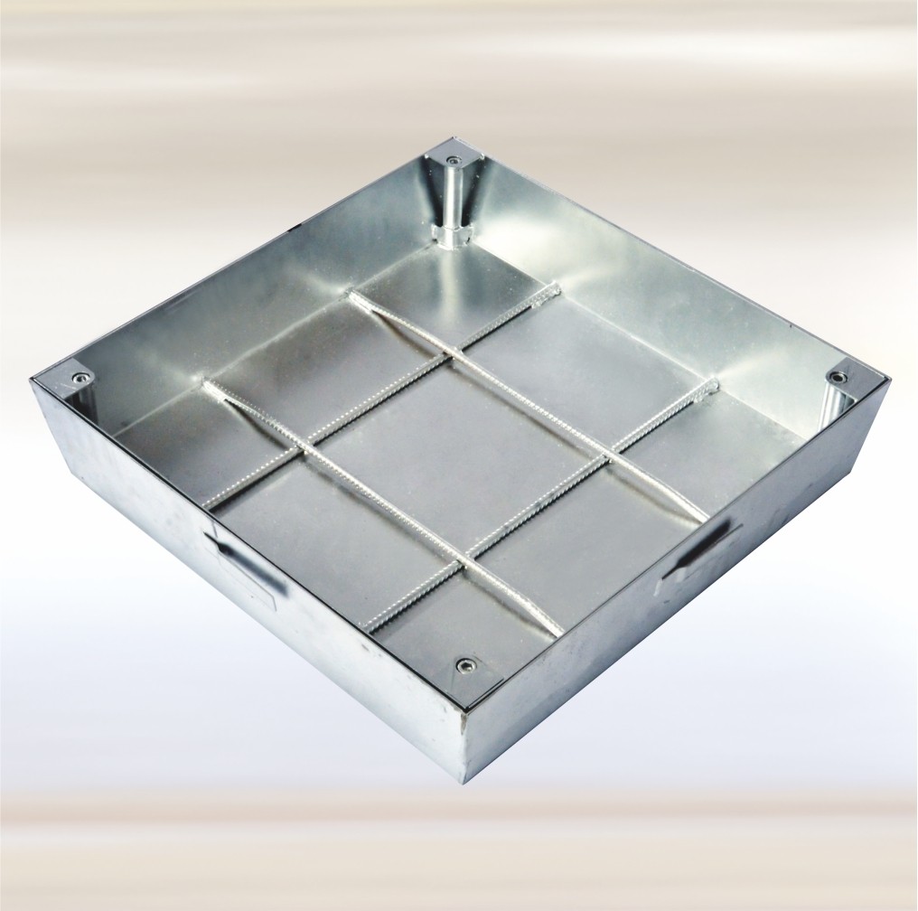 Este confectionat dintr-un cadru si un capac cu montaj aparent, cu un cadru de zabrele din otel