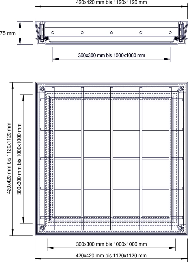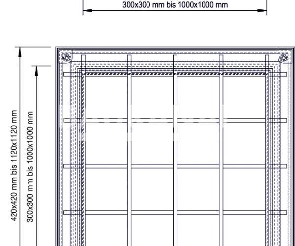 Este confectionat dintr-un cadru si un capac cu montaj aparent, cu un cadru de zabrele din otel