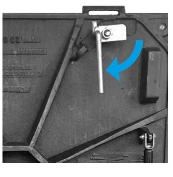 Capac din fonta tip cu telescop, dispozitiv de ridicare si sistem de deschidere din interior.