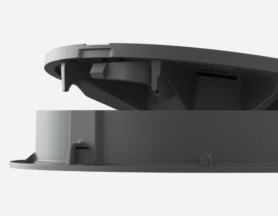 - Capac si rama din fonta cu balama si dispozitiv de blocare cu arc.