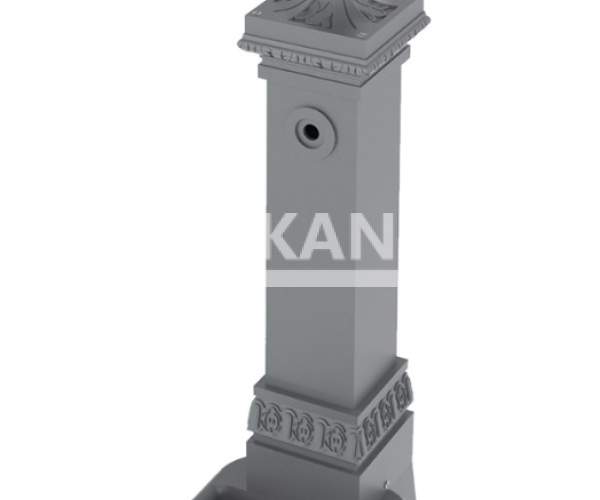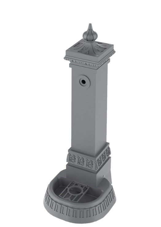 Cismea din fonta in stil MILAN, completa cu robinet din alama cu parghie sau buton, formata dintr-un corp prismatic gol cu ​​sectiune patrata cu reliefuri decorative orizontale inchise in partea de sus de o placa cu suruburi si un buton impodobit si dotata cu lavoar la semibaza, de forma circulara echipata cu o grila superioara pentru sprijin.