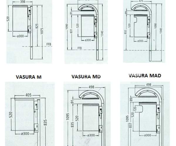 Cosurile de gunoi Vasura exista in diferite variante, optional cu capac, cu tavita pentru mucuri de tigara si diferite tipuri de picioare.
