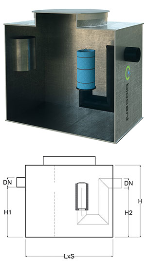 Separator de hidrocarburi in conformitate cu PN EN 858 realizat din PEHD cu filtru de coalescenta si inchidere automata.